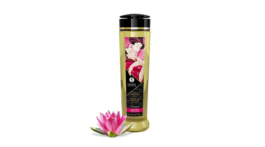 Élvezze az érzéki erotikus masszázsokat a Shunga hidegen sajtolt mandulaolaj, szőlőmagolaj, szezámolaj, avokádóolaj, E-vitamin, sáfrányolaj, illóolaj, ylang ylang és yohimbe kivonatok exkluzív keverékével, lótusz illattal. Dermatológiai szempontból tesztelt, nem vált ki allergiás reakciót, és teljesen ártalmatlan a bőrre.