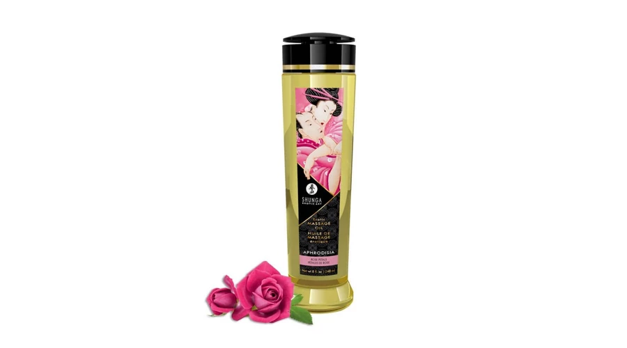 Élvezze az érzéki erotikus masszázsok örömét ezzzel a többek között mandulaolajból, szőlőolajból, E-vitaminból, illóolajból, napraforgóolajból készített exkluzív keverékkel. hidegen sajtolt olaj keverékével, rózsa illattal. Ezeket az olajokat gondosan választották ki stimuláló és energizáló tulajdonságaik miatt.