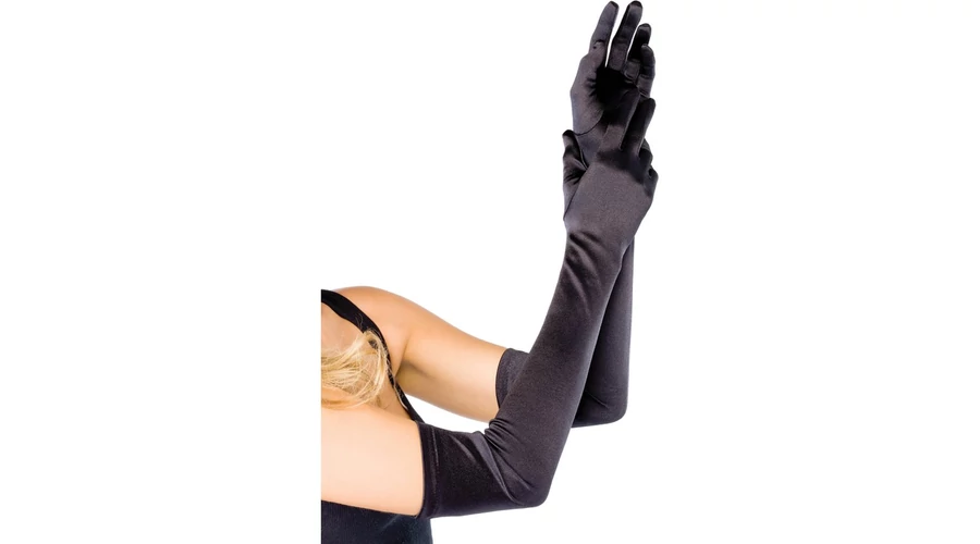 Extra hosszú szatén kesztyű fekete, O/S