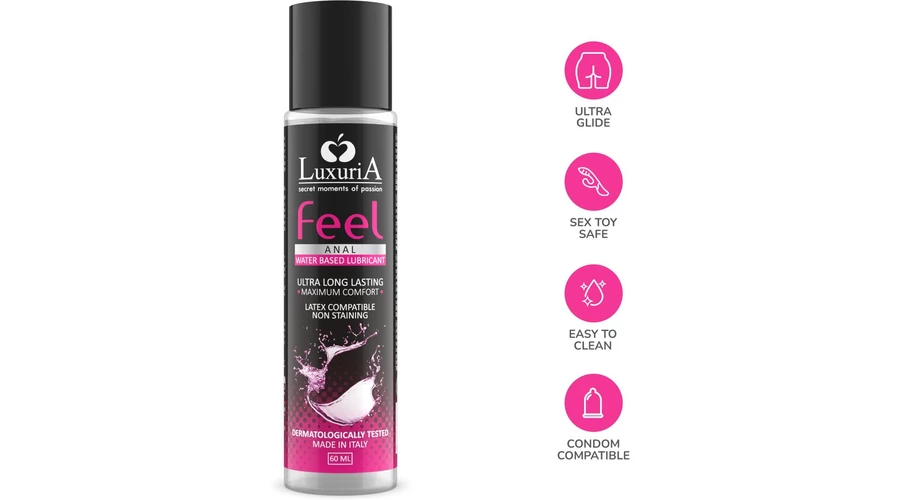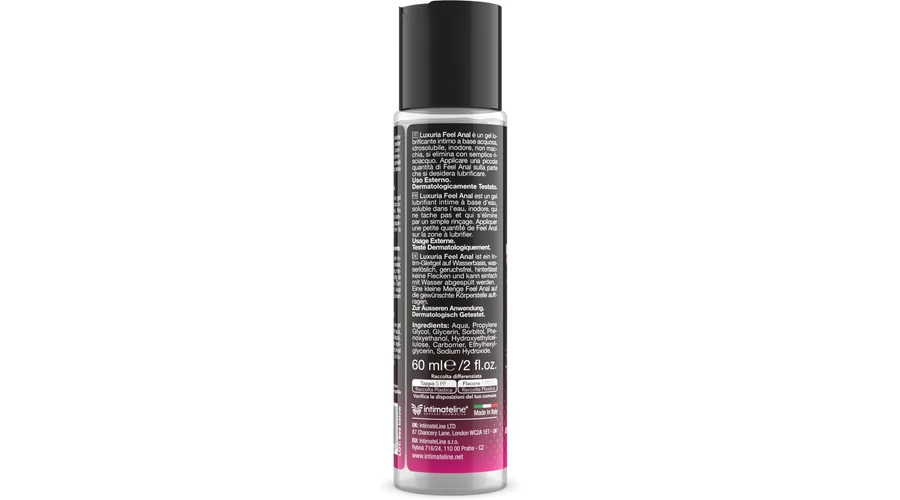 Uniszex, vízbázisú intim síkosító, amelyet kifejezetten a közösülés előtti anális síkosításra fejlesztettek ki. Nem hagy olajos érzetet és nem tartalmaz zsírokat. A Luxuria Feel Anal értékes természetes hatóanyagokban gazdag exkluzív összetételének köszönhetően megakadályozza a kellemetlen érzéseket, égő érzést és irritációt, amelyek természetes és hosszan tartó igénybevétel esetén az intim területeket érinthetik. Vízben oldódó termék.