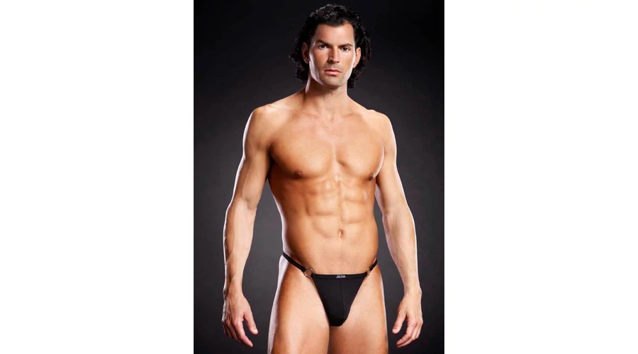 Fekete férfi tanga fémgyűrűkkel L/XL