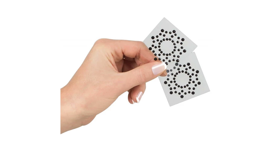 Öntapadós ékszer, mely érzékien öleli körbe a mellbimbókat, csillogó fekete kövekkel, melyek csillagot formáznak.