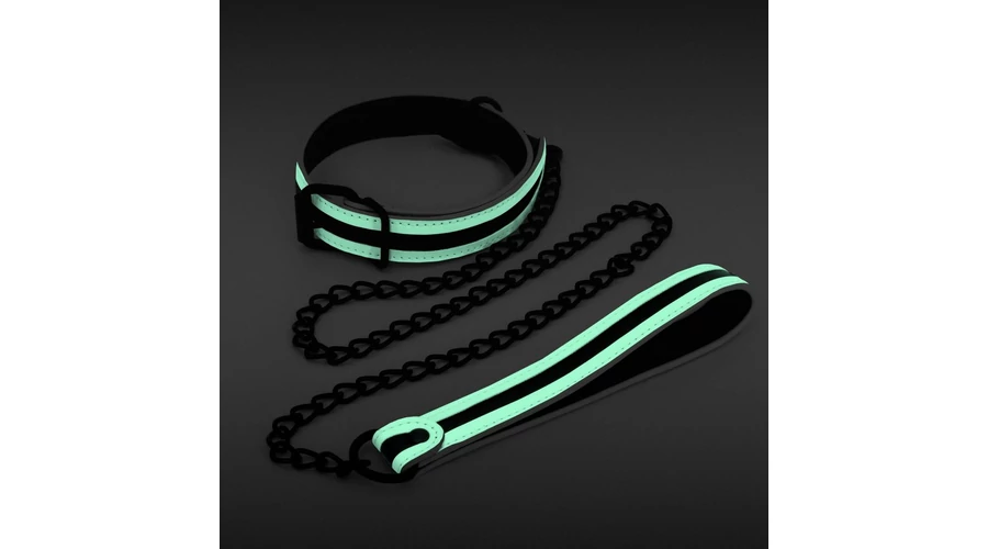 Sötétben világító, nyakra helyezhető erotikus fetish játék és egy hozzá tartozó póráz.