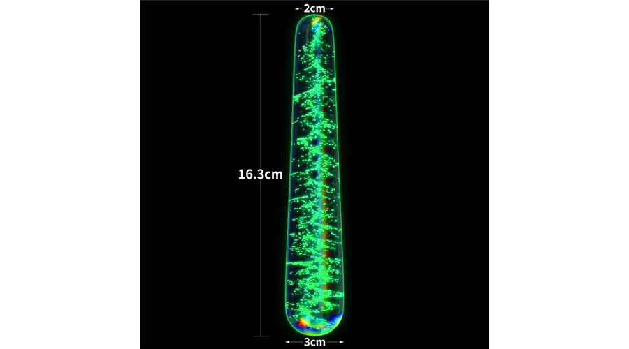 Tartós boroszilikát üvegből készített, hipoallergén, nem porózus, a sötétben világító, ideálisan lekerekített fejekkel stimuláló, a test számára teljesen biztonságos, kétvégű dildó. Uniszex, férfiaknak és nőknek és kezdőknek egyaránt ajánlott, anális és vaginális izgatásra is alkalmas. A termékeket kézzel készítik, így a méretekben kisebb eltérések előfordulhatnak.
