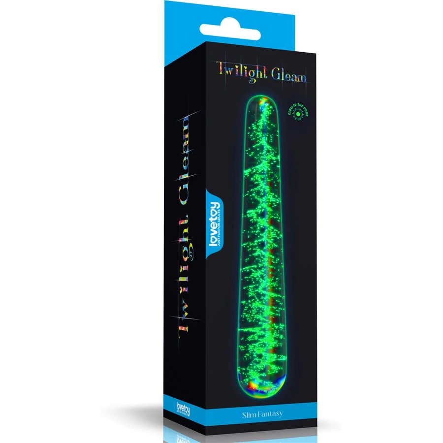 Glow-in-the-dark Twilight Gleam Glass dildó-Slim Fantasy kétvégű dildó