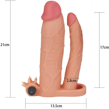 Add 3" Vibrating Double Penis Sleeve kétágú dildós péniszköpeny