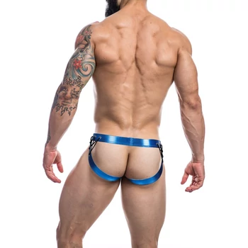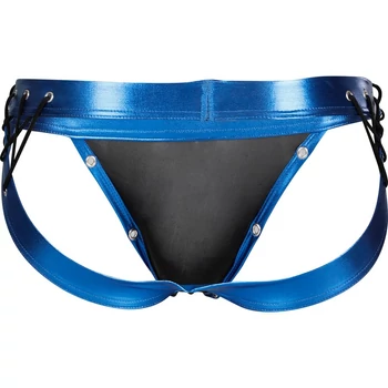 C4M-Desire Jockstrap-kék Leatherette-férfi tanga pántokkal L