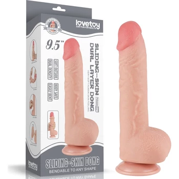 9.5'' Sliding Skin Dual Layer Dong Flesh dildó herékkel és csúsztatható bőrrel