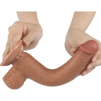 9'' Sliding Skin Dual Layer Dong Brown dildó herékkel és csúsztatható bőrrel