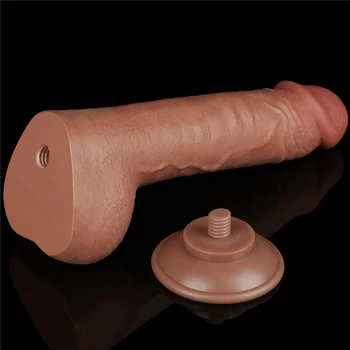 9.5'' Sliding Skin Dual Layer Dong Brown dildó herékkel és csúsztatható bőrrel
