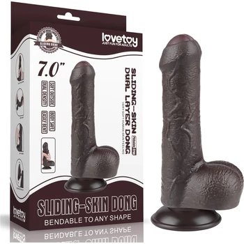 7'' Sliding Skin Dual Layer Dong Black dildó herékkel és csúsztatható bőrrel