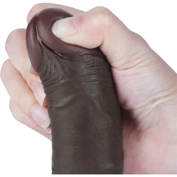 7.5'' Sliding Skin Dual Layer Dong Black I dildó herékkel és csúsztatható bőrrel