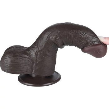 7.5'' Sliding Skin Dual Layer Dong Black III dildó herékkel és csúsztatható bőrrel