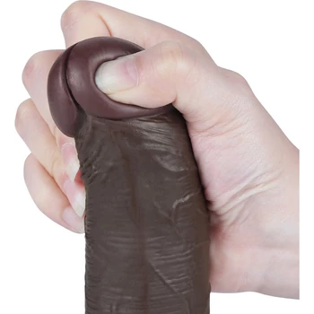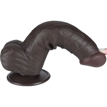 8'' Sliding Skin Dual Layer Dong Black III dildó herékkel és csúsztatható bőrrel
