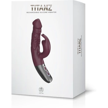 TITANZ 7" SILICONE RECHARGEABLE VIBRATOR IN RUBINE RED bordázott felületű g-pont és csiklóizgató vibrátor