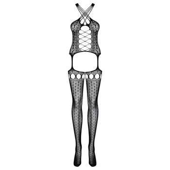 Obsessive N109 - hosszúujjú, nyitott necc overall (fekete)