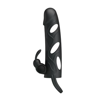 Pretty Love Penis Sleeve With Ball Strap vibrátoros kétágú péniszköpeny