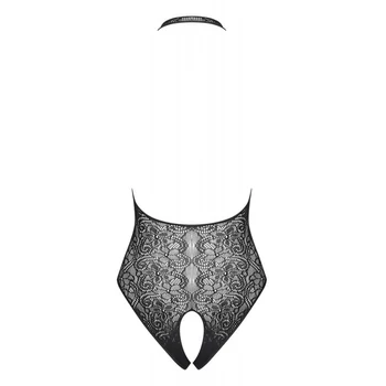 Fekete átlátszó virágmintás fűzős body S/M/L