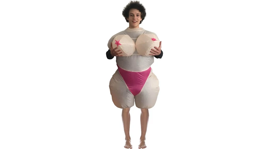 Felfújható, humoros ruha férfiak vagy nők részére. Legény és leánybúcsúk humoros, dekoratív kelléke lehet. Egy méret. Könnyen felfújható a csomagban található elektromos fúvóka segítségével.
