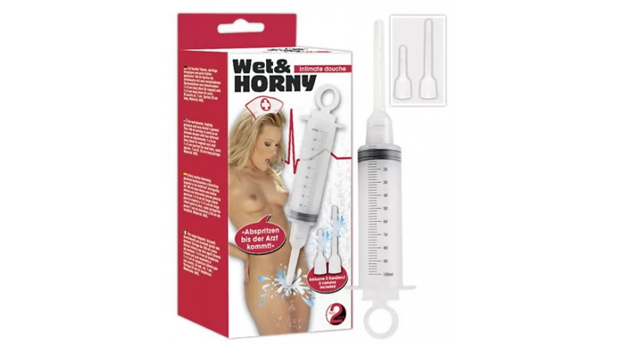Áttetsző műanyagból készült, élethű fecskendő formájú intim mosó a maximálisan tiszta, frissítő élvezetekért. Két különböző, cserélhető feltéttel. Az egyik feltét kb. 9cm hosszú, a másik pedig 5cm. A feltétek átmérője 0,9-1,2cm.