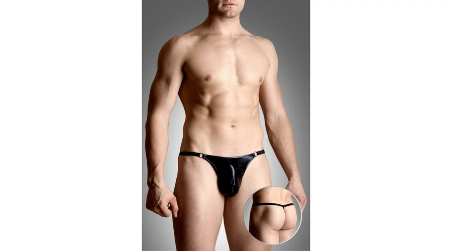 Latexhatású férfi tanga fém gyűrűkkel 4487 - fekete SL
