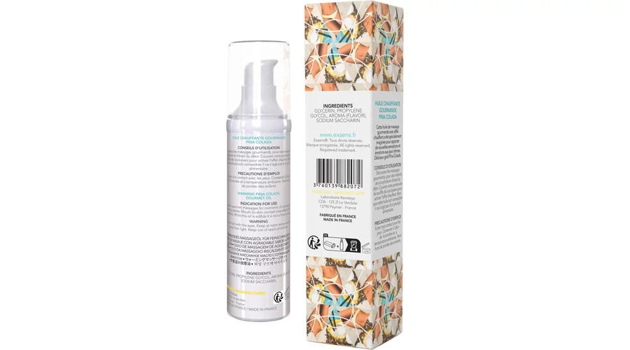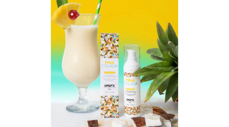 Ez a melegítő gourmet masszázsolaj ideális az előjátékhoz. Intim területekre alkalmazva melegítő érzést kölcsönöz, pina colada ízesítésének köszönhetően ösztönöz az érintésre és az orális örömökre. Cukormentes, vegán termék.