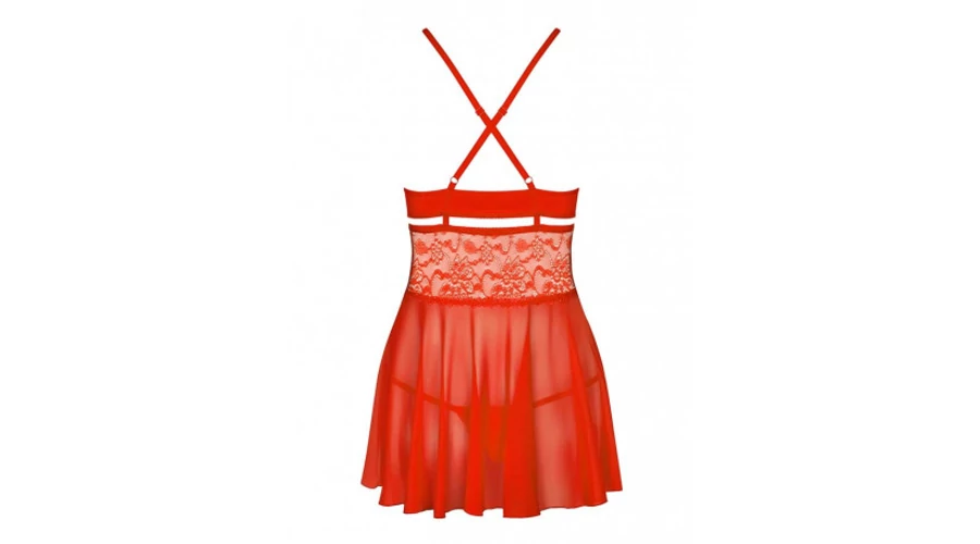 Puha, rugalmas anyagból készülő, kényelmes babydoll, felül pikáns, nyitott részletekkel, alul lenge, A-vonalú fazonban, így a csípőben erősebb Hölgyeken is tökéletesen mutat.