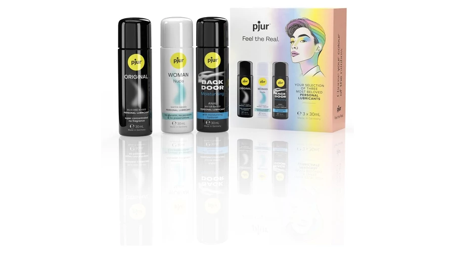 A szett tartalma: 1 db 30 ml Pjur Original szilikonbázisú síkosító, 1 db 30 ml Pjur Woman Nude vízbázisú síkosító és 1 db 30 ml Back Door Anal vízbázisú síkosító.