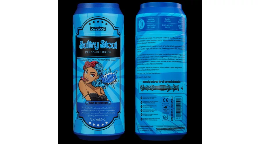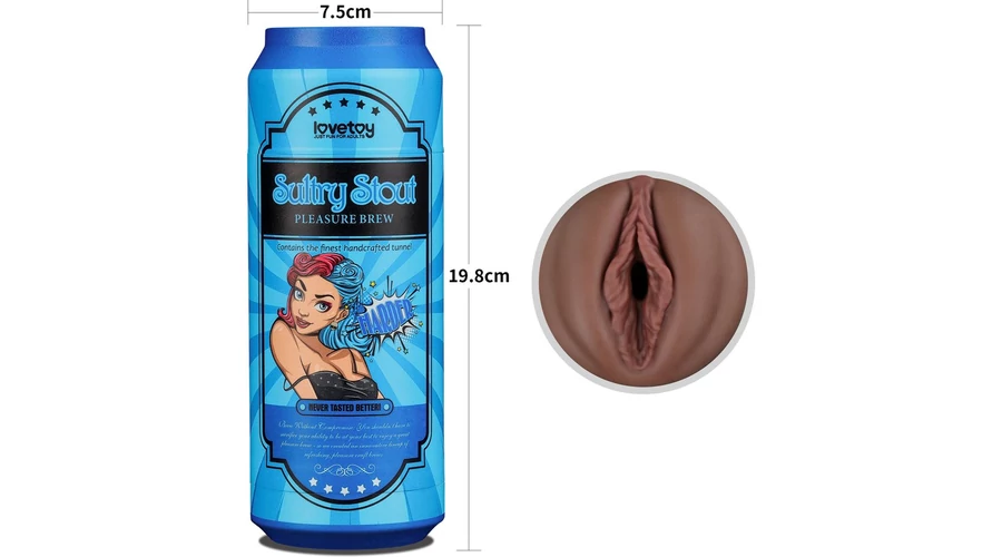 kialakítású, sörös dobozra hasonlító tartóban elhelyezett, vaginát formázó