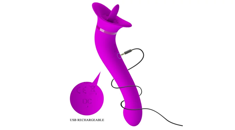 Prémium kategóriájú, kiváló minőségű anyagból készített, bársonyos tapintású, 12 rezgési és fejben lévő, nyelv alakú stimulátorban 12, az orális izgatást utánzó mozgási fokozattal rendelkező, a g-pont kényeztetésére is alkalmas, multifunkciós vibrátor.