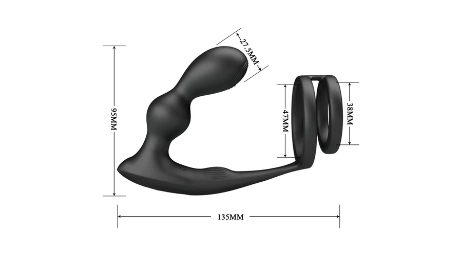 gyűrű, mely elősegíti a merevedés fenntartását viselője számára, biztonságosan csatlakoztatott vibrációs fenékdugóval. A fenékdugó 12 rezgési funkcióval