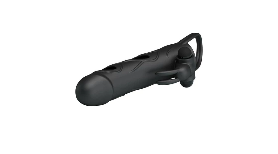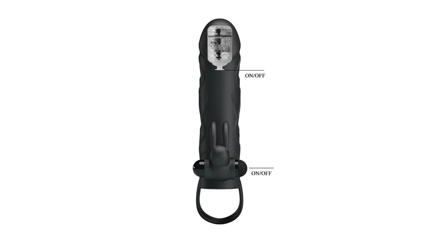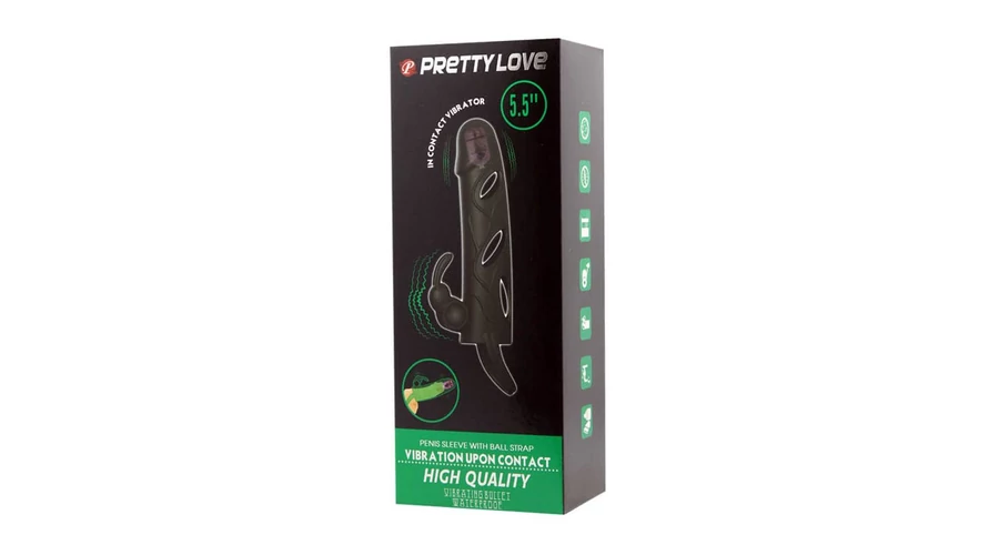 Pretty Love Penis Sleeve With Ball Strap vibrátoros kétágú péniszköpeny