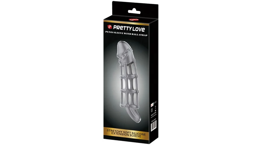 Pretty Love Penis Sleeve With Ball Strap White péniszköpeny heregyűrűvel