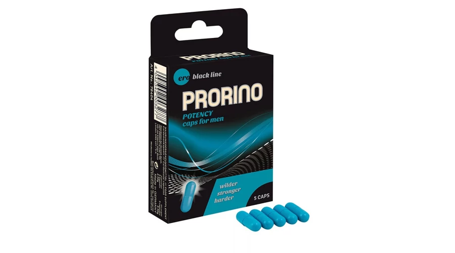 ERO PRORINO Potency Caps étrend-kiegészítő kapszula férfiaknak. Egy doboz ERO PRORINO Potency Caps 5 darab kapszulát tartalmaz.