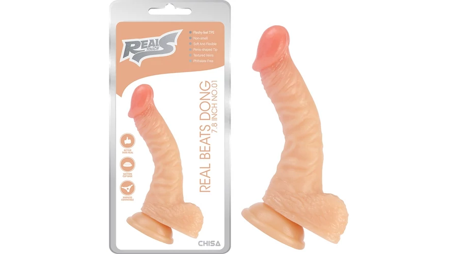 Real Beats Dong 7.8 Inch NO.01 dildó herékkel és tapadókoronggal