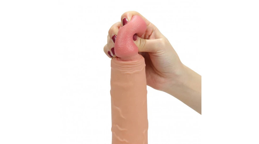 Felcsatolható, puha szilikonból készült, erezett felületű, valósághű dildó.