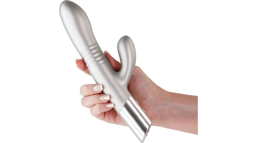 Kiváló minőségű anyagból készített, 14 vibrációs és 6 sebességi fokozattal rendelkező csiklóizgatóval kiegészített, csillogó felületű, gyönyörűen kivitelezett vibrátor, toló funkcióval.