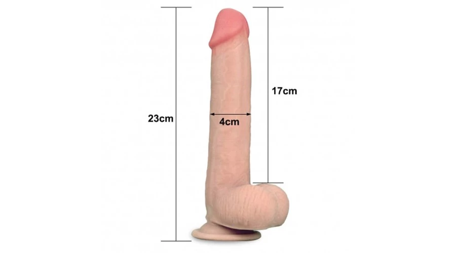 Pénisz formájú, lágy külső réteggel és kemény belső maggal rendelkező, testszövethez hasonló, bőrszerű tapintású anyagból készült, motor nélküli, erezett felületű, herékkel kiegészített, hajlítható dildó. Tapadókorongja segítségével sík felületre rögzíthető.