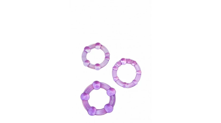 Férfiaknak ajánlott, péniszre helyezhető, 3 darabból álló erotikus készlet, mely elősegíti merevedés fenntartását viselője számára. Kialakítása révén behatolás közben a hüvely izom idegvégződéseinek stimulálására is tökéletesen alkalmas. A három gyűrű eltérő méretű.