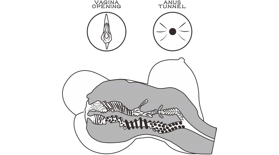kialakított, ánuszt és vaginát formázó testnyílásokkal és mellekkel ellátott