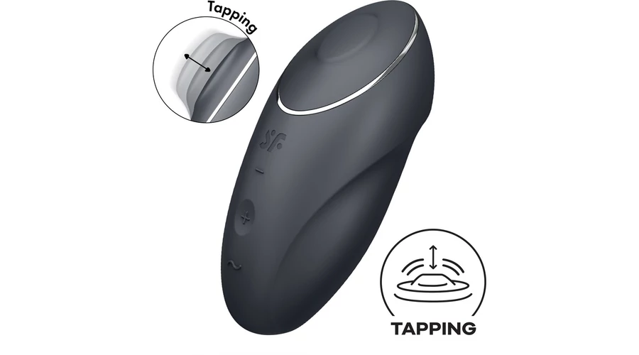A kiváló minőségű, bőrbarát anyagból készített, két motorral felszerelt Satisfyer Tap & Climax 1 mindent tartalmaz, amit Ön egy izgatótól elvár: elegáns dizájn, kompakt méret és természetesen intenzív rezgések, amelyeket az előlapon található gombokkal könnyedén irányíthat. Válasszon 11 vibrációs program közül a gyengédtől az intenzívig. Ez a Satisfyer eszköz azonban még többet kínál annak érdekében, hogy a csikló stimulációt a következő szintre emelje! A 11 további koppintó programmal a Satisfyer Tap & Climax 1 gyengéden – vagy néha kicsit erőteljesebben – koppint a csiklójára, és teljesen új típusú izgalmakat kínál.