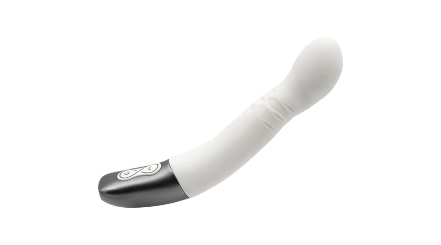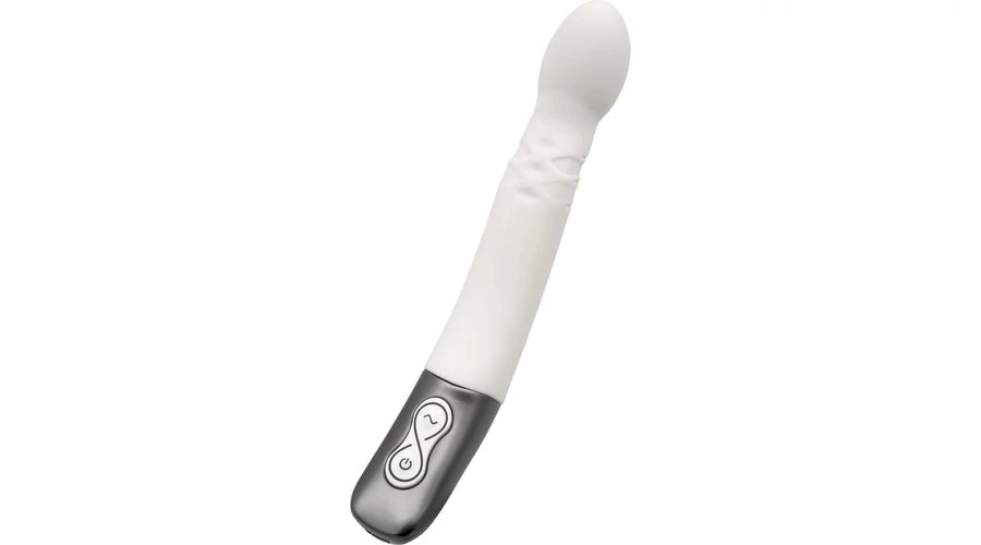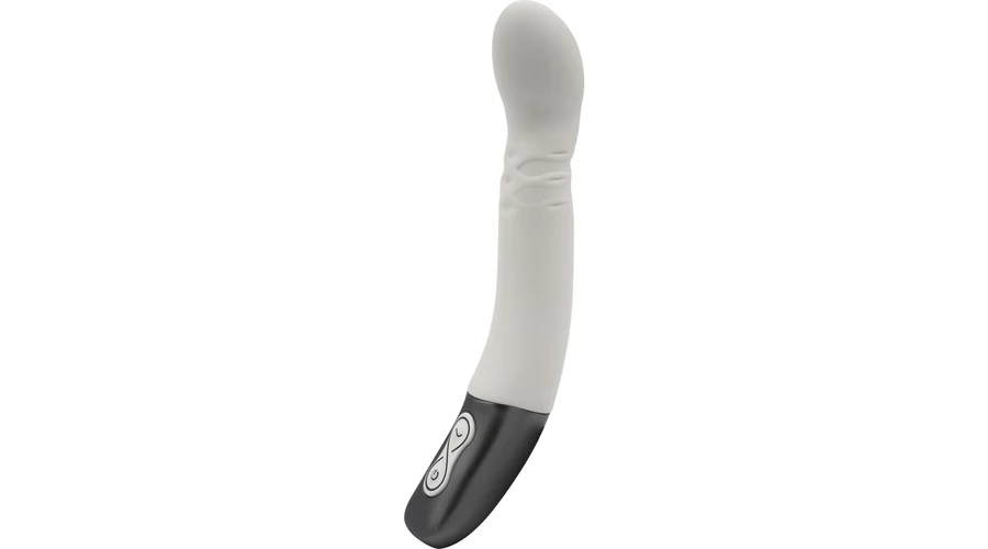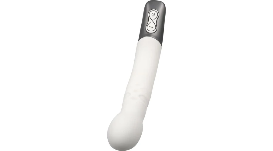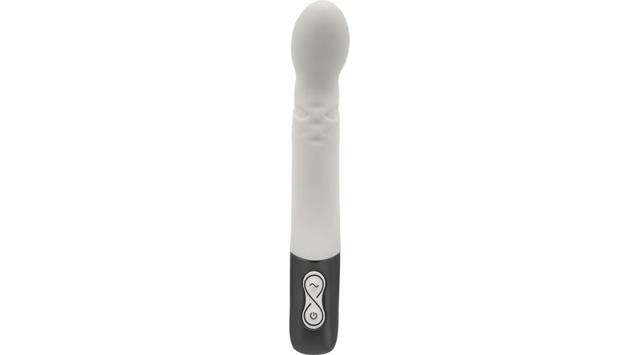 Kiváló minőségű szilikonból készített, enyhén bordázott felületű, a fejében 10 rezgési és 10 forgó funkcióval rendelkező, a g-pont stimulálására is használható, fém fogóval felszerelt vibrátor, LED-es kezelőgombokkal.