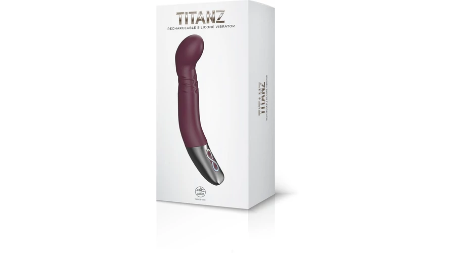 TITANZ 8" SILICONE RECHARGEABLE VIBRATOR IN RUBINE RED g-pontos vibrátor