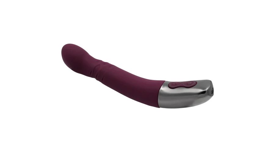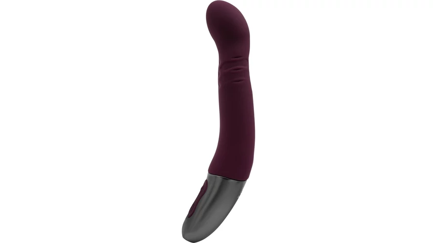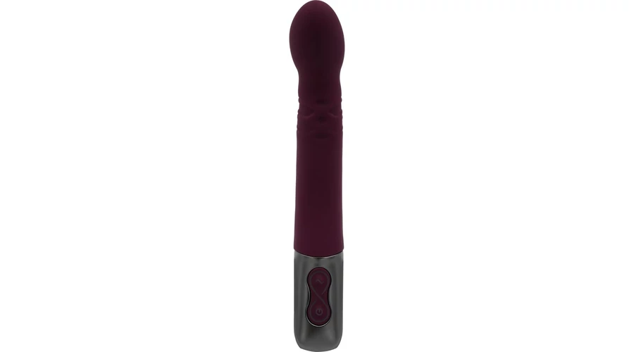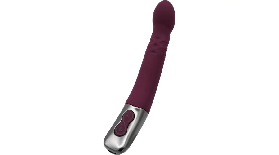 Kiváló minőségű szilikonból készített, enyhén bordázott felületű, a fejében 10 rezgési és 10 forgó funkcióval rendelkező, a g-pont stimulálására is használható, fém fogóval felszerelt vibrátor, LED-es kezelőgombokkal.