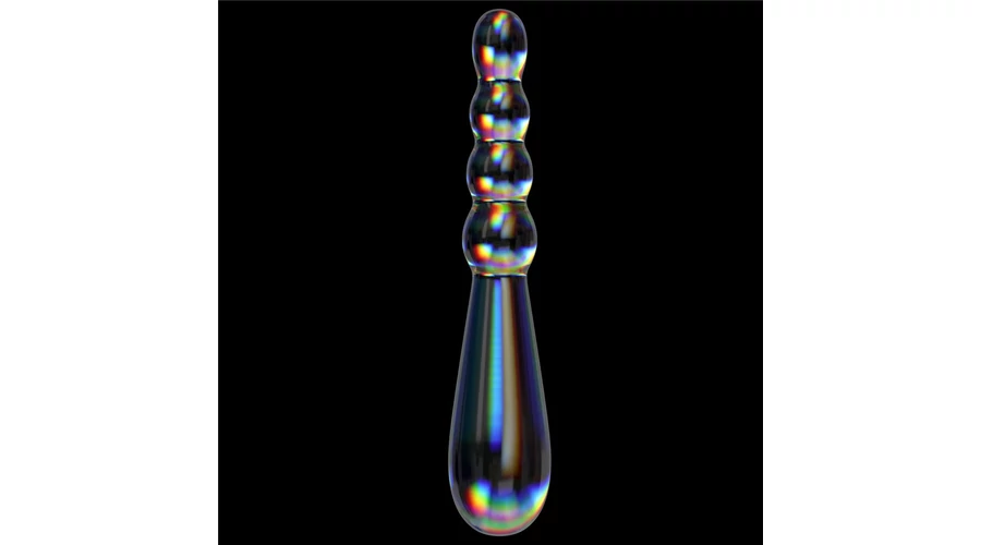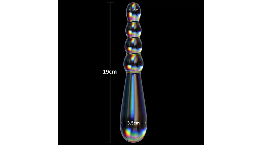 Tartós boroszilikát üvegből készített, hipoallergén, nem porózus, prizmatikus árnyalatok sokaságával rendelkező, ideálisan lekerekített gömbökkel stimuláló, a test számára teljesen biztonságos fenékdugó. Uniszex, férfiaknak és nőknek egyaránt ajánlott. A termékeket kézzel készítik, így a méretekben kisebb eltérések előfordulhatnak.