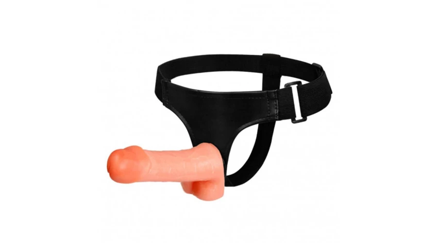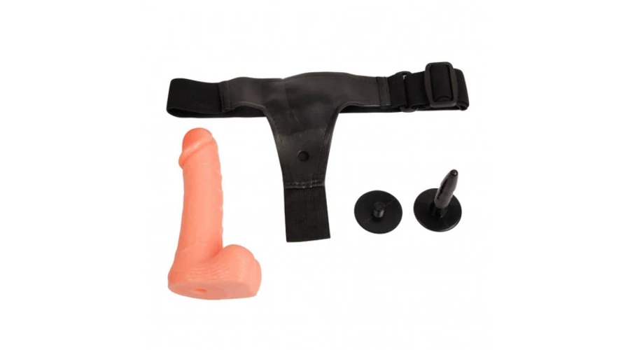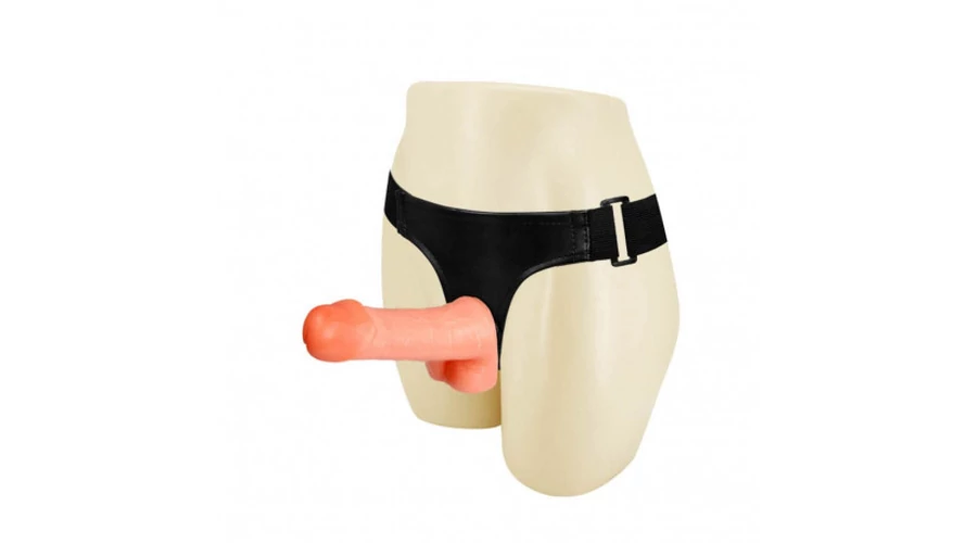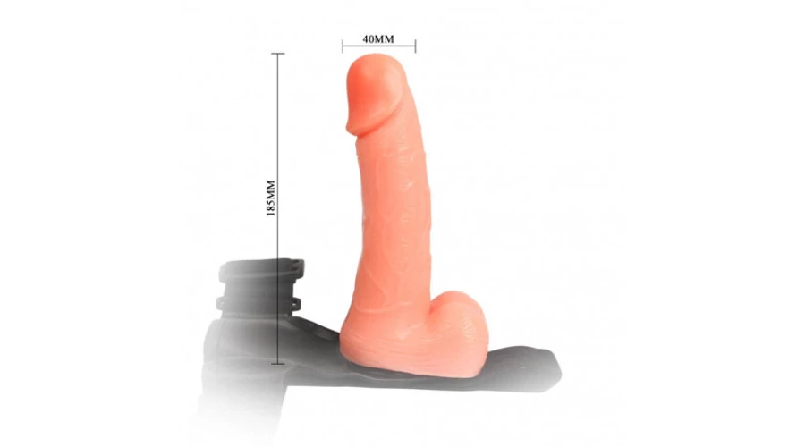 Hölgyek számára készített, felvehető, erezett felületű, bőrszerű tapintású, herékkel kiegészített dildó.