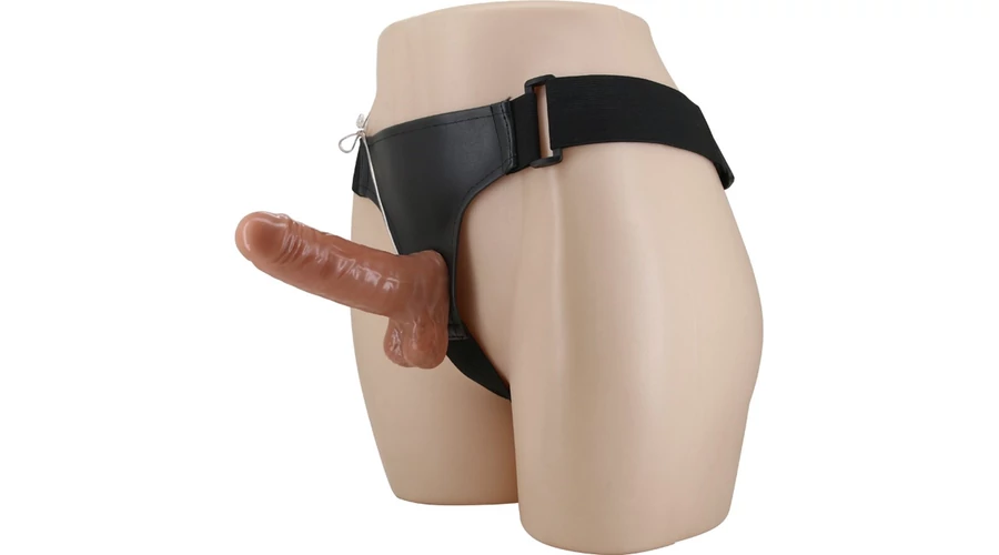 Kiváló minőségű anyagból készített, hölgyek részére készített, felvehető, távirányítóval működtethető, állítható rezgéserősségű, erezett felületű, herékkel kiegészített vibrátor. Felvétele állítható pántokkal és csatokkal történik.