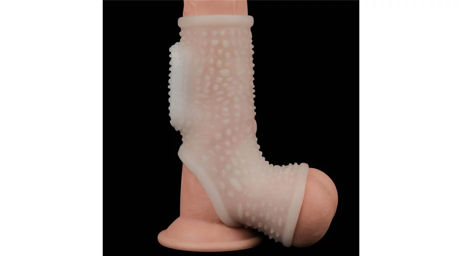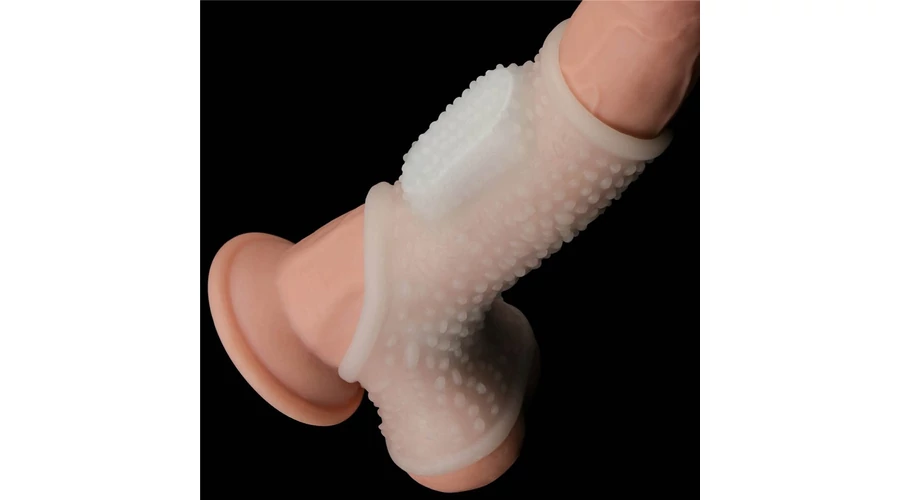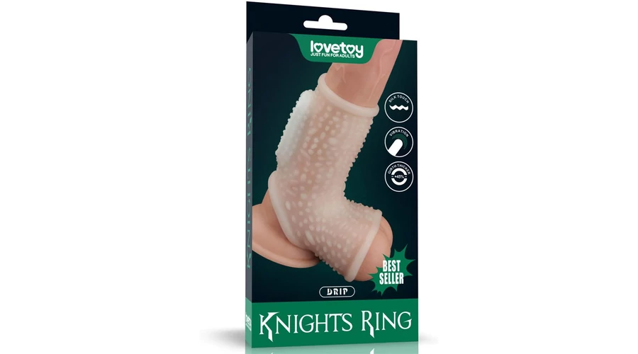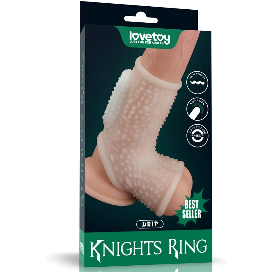 Vibrating Drip Knights Ring with Scrotum Sleeve (White) pénisz és heregyűrű