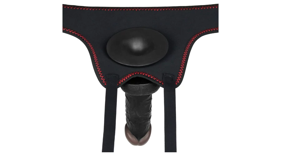 hámmal. A hám 60 és 143 cm közötti derékméretekhez alkalmas. A dildó