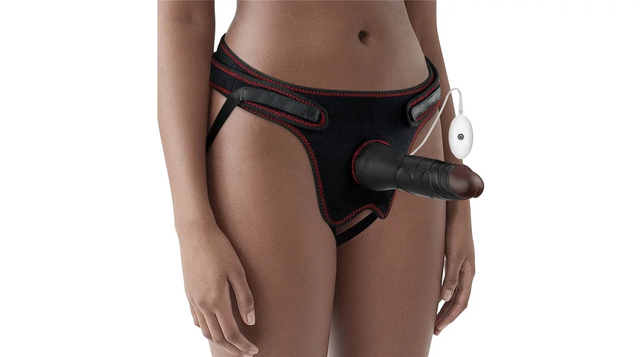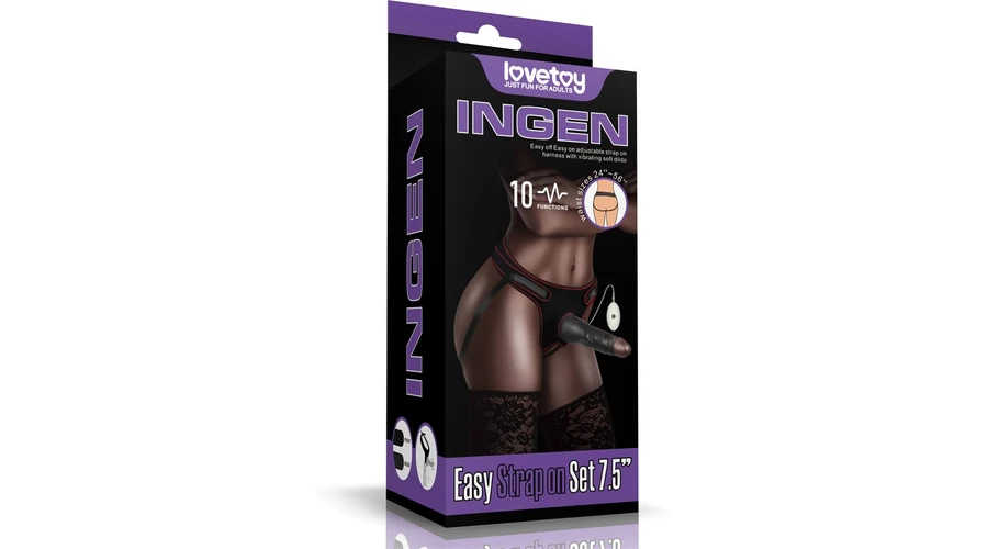 Vibrating Easy Strapon Set 7.5'' Black vibrációs csatolható dildó